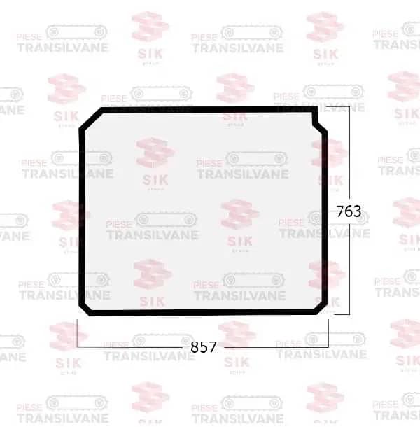 Geam din sticlă laminat pentru JCB, grosime de 3+3 mm, curbat. DIMENSIUNE 857*763