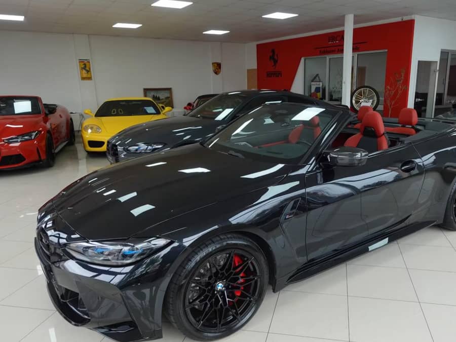 Active seat ventilation in the front, BMW Display Key, BMW Drive Recorder (dashcam), Brake system: Compound M brake system (red brake calipers), Exterior package M Carbon, Driving Assistant Professional, Comfort Access with Digital Key, Interior: BMW Individual Merino full leather, Neck warmer, Steering wheel: Heated steering wheel, Head-Up Display, Interior trim strips in carbon, Innovation Package, Metallic paint, Open-Air Package, Radio accessories: Harman/Kardon SS Cabrio, Parking Assistant Package Plus, Smoker's Package, Tire repair kit (Mobility Pack), BMW Laserlight, Headlights BMW Individual Shadow Line, Seat belts M, Wheels: 19"/20" forged. 826M Black, Windscreen.