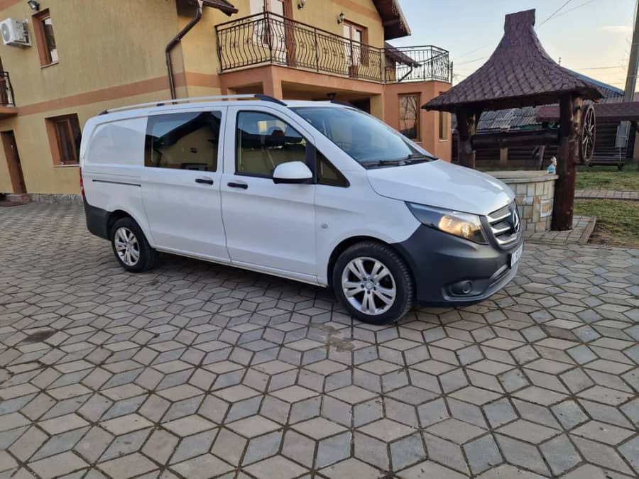 Mercedes Vito 114, dublu cabine, an fabricație 2017, 6 locuri și marfă, model lung, motor 2,2 diesel, 100 kw, 140 cp, euro 6, climă, computer bord, start-stop, ABS, ESP, senzori ploaie, vopsea originală, 260000 km, originali, ofer serie caroserie, jante aluminiu, cauciucuri M+S,arată și funcționează perfect, adus recent.
