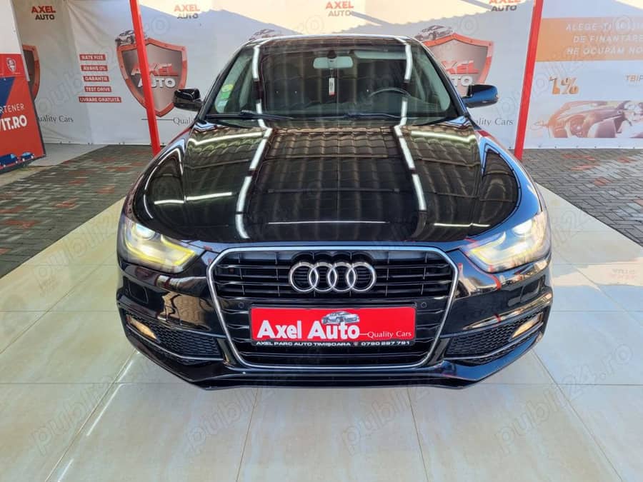>>Axel Parc Auto Timisoara>LIVRARE GRATUITA - Oferim transport Gratuit la domiciliu oriunde in tara!! >>GARANTIE - Oferim Garantie pe o perioada de 12 luni fara limita de km!! >> RATE FIXE - APROBARE RAPIDA >> LA CERERE OFERIM SI NUMERE PROVIZORII (Contra Cost) >>TEST DRIVE - POSIBILITATE TEST DRIVE CU NUMERE DE PROBA!!! ===AUDI ULTRA=== ===A4 B8,5=== DOTARI: -AN 2014 09,EURO 6 -MOTOR 2000 DIESEL,150CP -PACHET S'LINE EXTERIOR -MODEL FACELIFT -CUTIE AUTOMATA -RULAJ: 259.000 KM -INTERIOR CONFORT TEXTIL -NAVI GPS 3D -COMENZI VOLAN -COMPUTER BORD -MAXIDOT COLOR -2 SLOTURI CARD -INTRARE AUXILIARA -BLUETOOTH -RADIO CD -CLIMATRONIC -PILOT AUTOMAT -COTIERA FATA SPATE -GEAMURI ELECTRICE -GEAMURI FUMURII -OGLINZI ELECTRICE SI INCALZITE -SEMNALIZARE IN OGLINDA -FRANA DE MANA ELECTRICA -START STOP SEMAFOR -SERVOTRONIC -SISTEM ISOFIX -FARURI AUTOMATE -FARURI BIXENON -LUMINI DE ZI CU LED -FOLLOW ME HOME -COMING HOME -STOPURI CU LED -SENZORI LUMINA -SENZORI PLOAIE -PROIECTOARE CEATA -SPALATOARE FARURI -SENZORI PARCARE SPATE CU AFISAJ -JANTE ALUMINIU -Scaune reglabile si pe inaltime -Servodirectie -Faruri reglabile -6 airbaguri -ABS,ESP -Inchidere centralizata >> CUMPARATA DIN FRANTA DIRECT DE LA PROPRIETAR >> AXEL AUTO - Strada Teilor, Nr. 170, Timisoara (GIARMATA VII). >> Numar de Contact 0790.287791