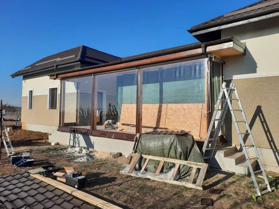Inchid terase, foisoare, publice sau private spatii comerciale cu folie transparenta (antivant).