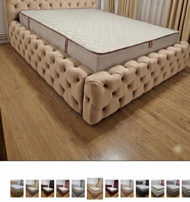 Pat tapițat de calitate cu structura de lemn masiv tapițat cu catifea și alte materiale textile. Disponibil in mai multe culori și dimensiuni