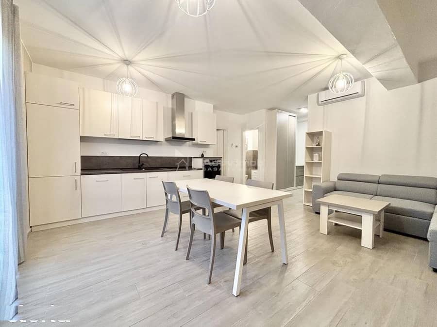 Compartimentarea este practică și decomandată: hol cu spații de depozitare, living cu bucătărie open space complet echipată, dormitor matrimonial, baie cu duș, bideu și mașină de spălat rufe.