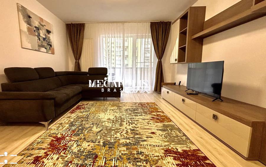Vă oferim spre închiriere un apartament modern cu 2 camere open space, situat într-un bloc nou. Apartamentul este la a doua închiriere și se află în cartierul Tractorul, Top City, pe strada Ștefan Baciu nr. 52, la doar câteva minute de Coresi Shopping Mall.