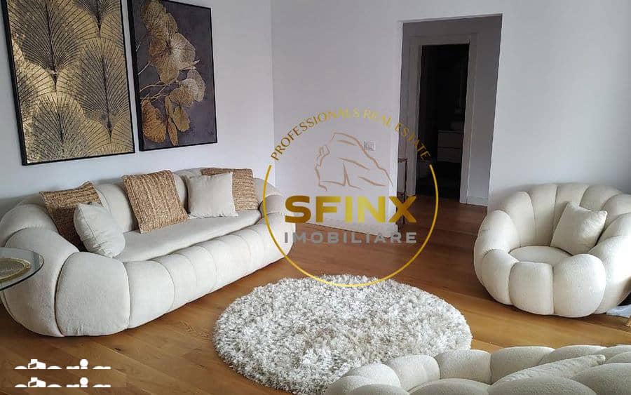 Zona de living impresionează prin designul modern, completat de canapea și fotolii de designer, iar dormitorul oferă un element spectaculos – un pat rotund, tapițat cu catifea, de dimensiuni generoase. Fiecare detaliu este gândit pentru confortul absolut al viitorului chiriaș.