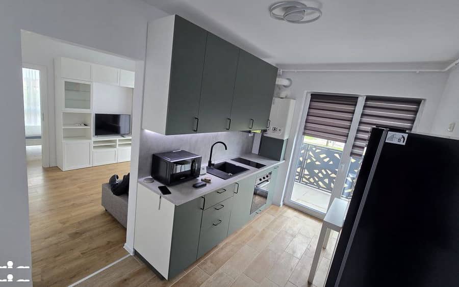 Apartament 2 camere, bloc nou, finalizat in 2025, mobilier IKEA, electrocasnice noi, balcon mare. Compartimentarea este facuta astfel: