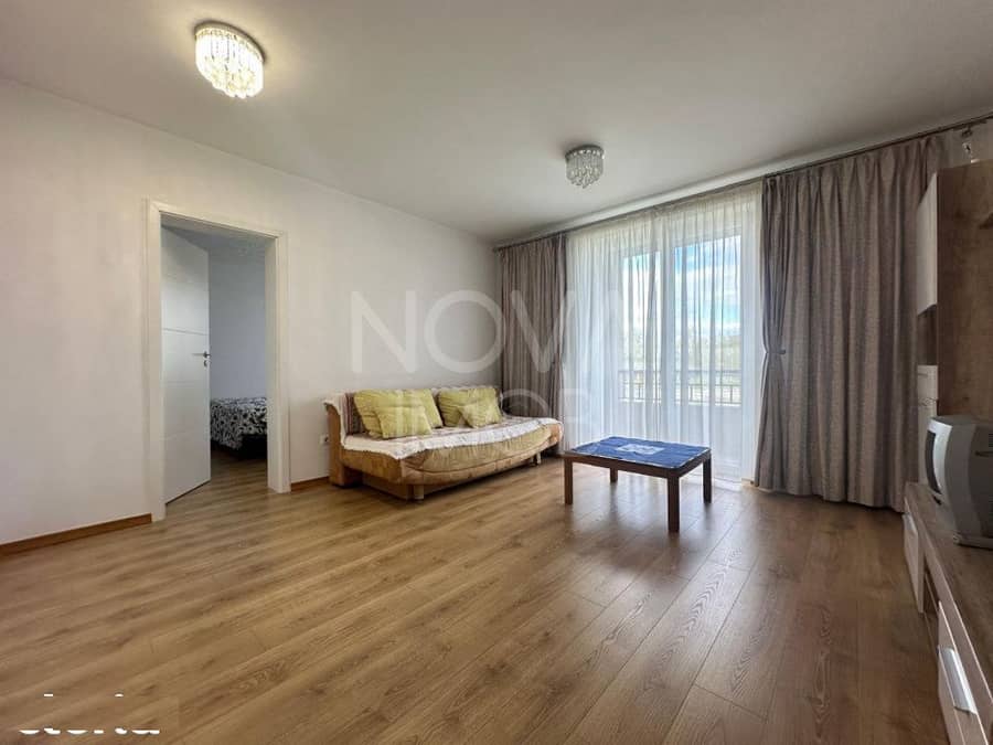 Compartimentare: Hol, living (cu acces spre balcon), bucatarie cu loc de luat masa (cu acces spre balcon), dormitor, baie dotata cu cada si balcon de 6 mp.