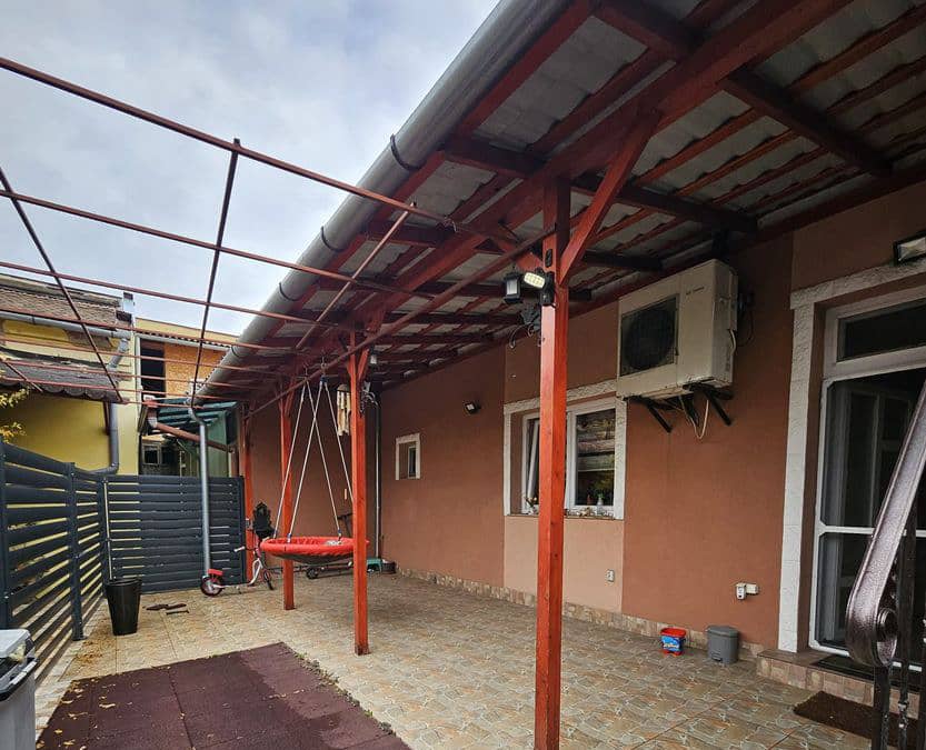 Curte proprie de aproximativ 110 mp, total teren + amprenta casei, este de 223 mp.