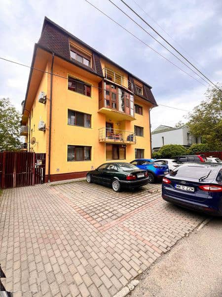 Are balcon mare cu priveliste frumoasa spre o gradina si parcare inclusa