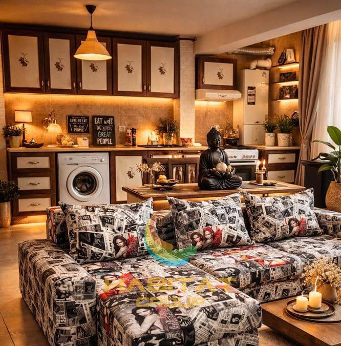 Cu o suprafață generoasă de 85 mp, locuința impresionează prin amenajarea în stil modern „Bohu”, care îmbină elemente naturale, texturi calde și accente contemporane, oferind un ambient primitor și diferit față de amenajările standard.