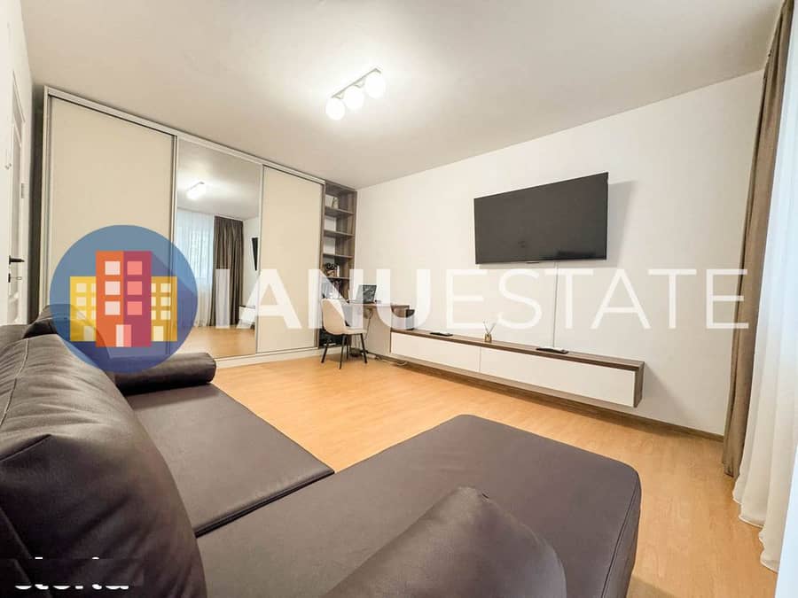 Dispune de un living spatios si luminos echipat cu o canapea extensibila, TV,AC, dormitorul cu pat matrimonial, dressing incapator, baie + balcon. Apartamentul este mobilat si utilat complet modern.