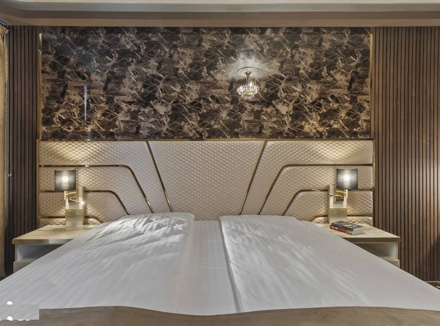 - Dormitor matrimonial: mobilat cu birou, cu acces către dressing și baie proprie, pat king size (200x200cm) cu saltea ortopedică, draperii black-out și TV cu diagonală 50".