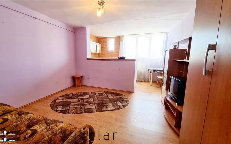 Klar Imobiliare offers for rent a studio, semi-detached, located in the Manastur neighborhood, BIG area, available on the 10th floor of 10, with an area of 28 square meters, consisting of hall, bathroom, bedroom with kitchen. The building is located near the market, RATP station, schools, kindergarten, 5 minutes from BIG.