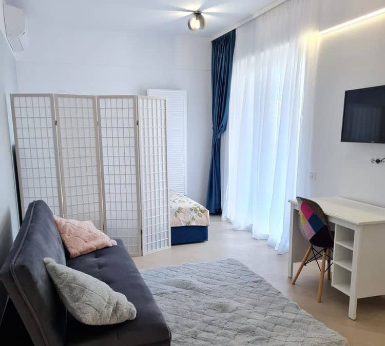 Garsonieră de închiriat în zona Delta Văcărești – Sun Plaza, situată pe Strada Povestei, într-un imobil construit în 2022, la etajul 4 din 10, cu vedere către Parcul Natural Văcărești.