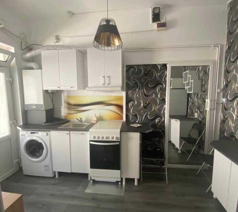 Garsoniera moderna la curte cu intrare separata, contorizare individuala, Centrală Termică Proprie și Aer Condiționat, mobilată și utilată complet modern gresie faianță parchet laminat termopan situata la intrarea pe Șoseaua Giurgiu dinspre Eroii Revoluției, la 2 minute de Tramvai și 3 minute de Metrou, Loc Parcare plătit ADP
