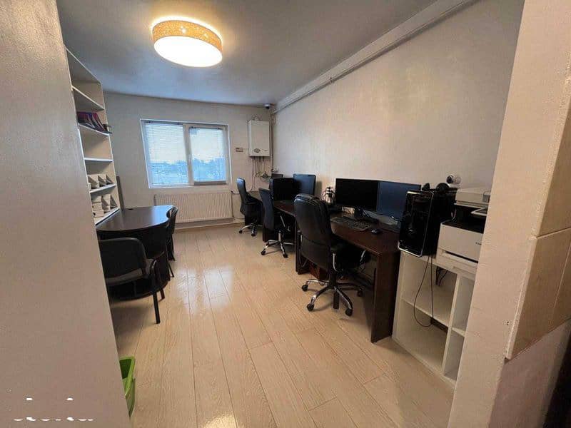 Inchiriez garsoniera 21 mp cu baie proprie. Mobilierul din dotare cuprinde 3 birouri si 4 dulapuri de acte mari si un dulap mic.