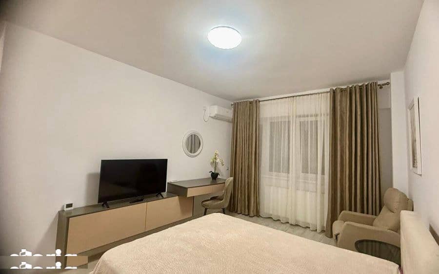 In cadrul complexului Unirea Towers, se inchiriaza apartament la et 9 din 11 cu loc de parcare suprateran. Orientat Sud, pe mijloc, apartamentul are o suprafata de 41 mp, din care, 3,6 mp de balcon deschis. Camera moderna, mobilata cu zone de depozitare suficiente pentru aceasta suprafata, bucatarie inchisa, complet echipata, baie cu cada, masina de spalat. Aparatmentul are centrala proprie, aer conditionat, pat matrimonial, un extensibil, zona de birou, TV.