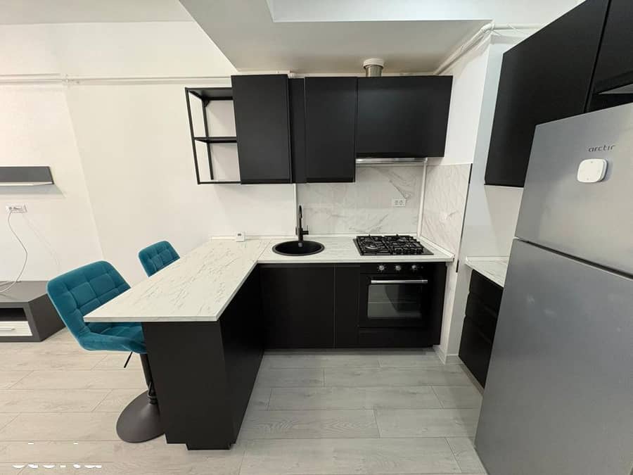 Apartamentul are 58 metri patrati, dispune de incalzire in pardoseala, centrala proprie, aer conditionat in ambele camere, electrocasnice incorporate, masina de spalat rufe si doua birouri care va vor permite munca de acasa.