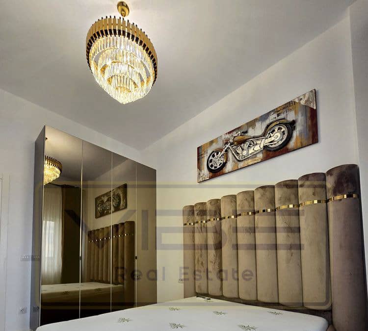 Apartamentul beneficiază de mobilier realizat la comandă din MDF, cu un design modern, ce creează un ambient cald și confortabil. Dispune de multiple spații de depozitare (dulapuri pe hol și dressing dublu în dormitor), 2 Smart TV-uri, înălțime generoasă a camerelor (3 m) și electrocasnice moderne.
