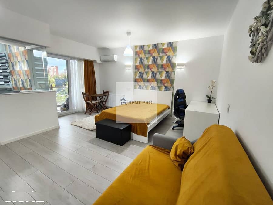 Se oferă spre închiriere o garsonieră tip studio, situată în complexul GranVia Residence (Bd. Timișoara nr. 28A), la doar câteva minute de Plaza România.