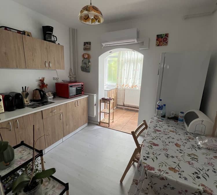 Vă propunem spre vânzare un apartament cu două camere decomandate 1Mai 2/4 2 balcoane cu o suprafață totală de 58 mp centrală termică ac termopan mobilat utilat 121000 euro