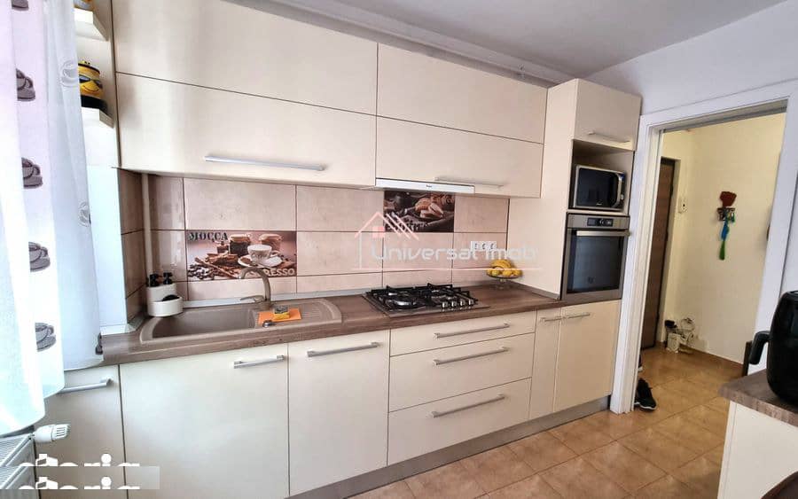 Universal Imob va ofera spre vanzare un apartament cu 4 camere decomandate situat intr-o zona linistita a cartierului Manastur, zona Calea Floresti, retras de la strada principala. Acesta se afla la etajul 3 al unui bloc cu 4 etaje, este izolat exterior, are suprafata utila de 85 mp. , compusa din 4 camere, bucatarie, debara, 2 holuri, 2 bai dintre care una cu geam si o logie. Apartamentul se vinde mobilat si utilat modern, dispune de centrala termica proprie, usa de intrare metalica, geamuri termopan, instalatie electrica si sanitara inlocuite, parchet din lemn masiv reconditionat, si este dotat cu plita pe gaz, cuptor electric, hota, frigider, masina de spalat vase si masina de spalat rufe, etc. Se poate cumpara si un loc de parcare cu C.F. individual situat in apropierea imobilului, acces controlat cu bariere, la pretul de 10.000 euro. Pentru mai multe informatii sau programarea unei vizionari, ne puteti contacta atat telefonic cat si prin email, mesaj sau whatsapp