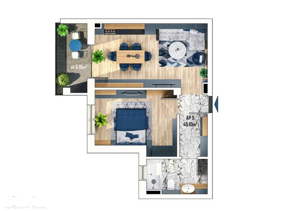 - Suprafață: 45.1 m²