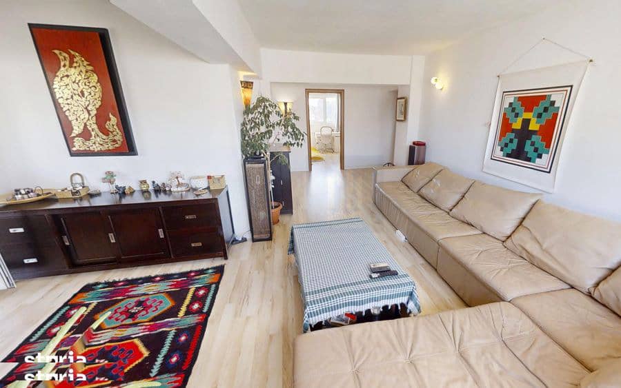 Apartamentul rezulta dintr-o conversie a unui fost apartament cu 4 camere, ceea ce a permis obtinerea unor spatii generoase si o compartimentare eficienta. Suprafata utila este de 80 mp, la care se adauga un balcon inchis de 5 mp. Distributia spatiilor este urmatoarea: hol de intrare, bucatarie complet mobilata si utilata, living-room, 2 dormitoare si 2 bai, ambele beneficiind de fereastra cu lumina naturala.