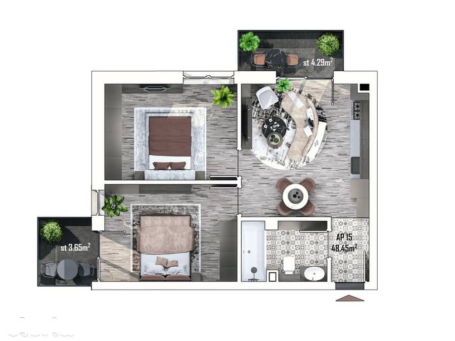 Apartamente cu 2 camere (40–50 m²)