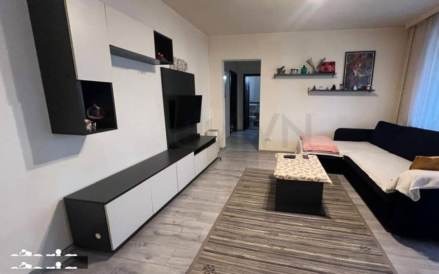 Apartamentul se vinde mobilat si utilat, exact ca in fotografii, cu exceptia televizorului din living. Este dotat cu aragaz, cuptor, frigider, masina de spalat rufe Ariston, aer conditionat de 12.000 BTU, usa glisanta la bucatarie si spatii de depozitare eficient organizate, inclusiv un spatiu inchis cu usi culisante in apropierea baii.
