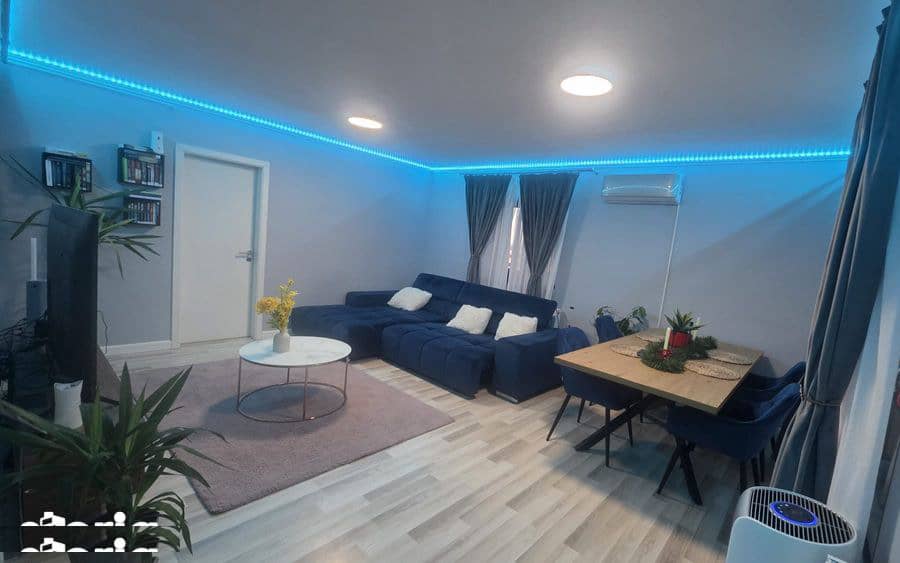 Suprafața utilă a apartamentului este de 76 m2 + terasa de 16 m2 și balcon de 5 m2, compartimentat astfel : living, 2 dormitoare matrimoniale , 2 bai (una de serviciu - și una principala ), bucătărie cu camara , balcon, terasă.