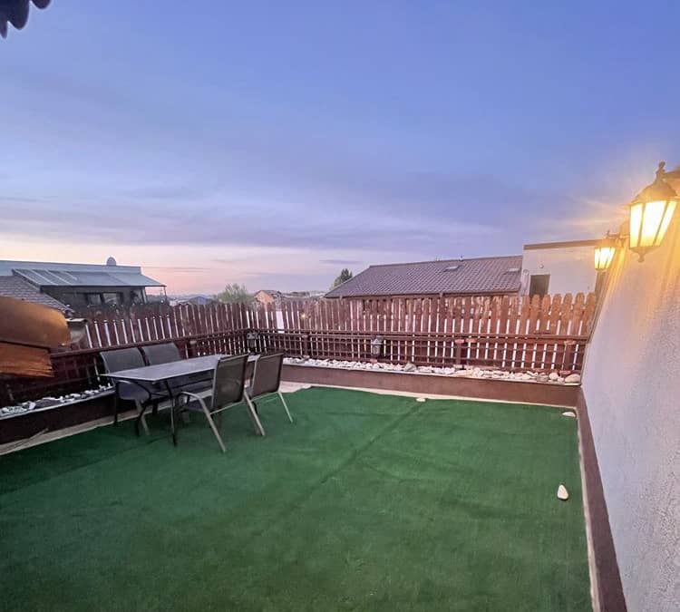 De vânzare apartament cu 3 camere + terasă, suprafață 108 mp, mobilat și utilat. Apartamentul dispune și de un loc de parcare chiar în fața scării.