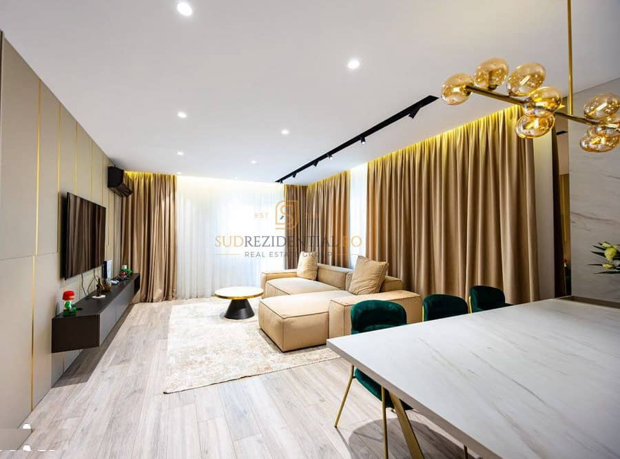 Apartamentul se ofera spre vanzare complet finisat, mobilat și utilat, evidentiindu-se prin finisaje de înalta calitate, mobilier elegant și electrocasnice premium. Intregul concept de amenajare a fost realizat conform unui proiect de design interior semnat de arhitect, punand accent pe functionalitate, estetica si confort.