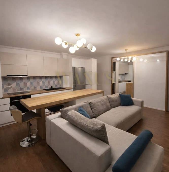 Apartamentul se vinde complet mobilat și utilat, cu mobilier realizat la comandă, bucătărie complet echipată (inclusiv mașină de spălat vase), mașină de spălat haine + uscător, încălzire în pardoseală și aer condiționat. Beneficiază de dressinguri generoase, baie spațioasă cu geam și finisaje de calitate superioară, completate de o insulă elegantă în zona de dining.