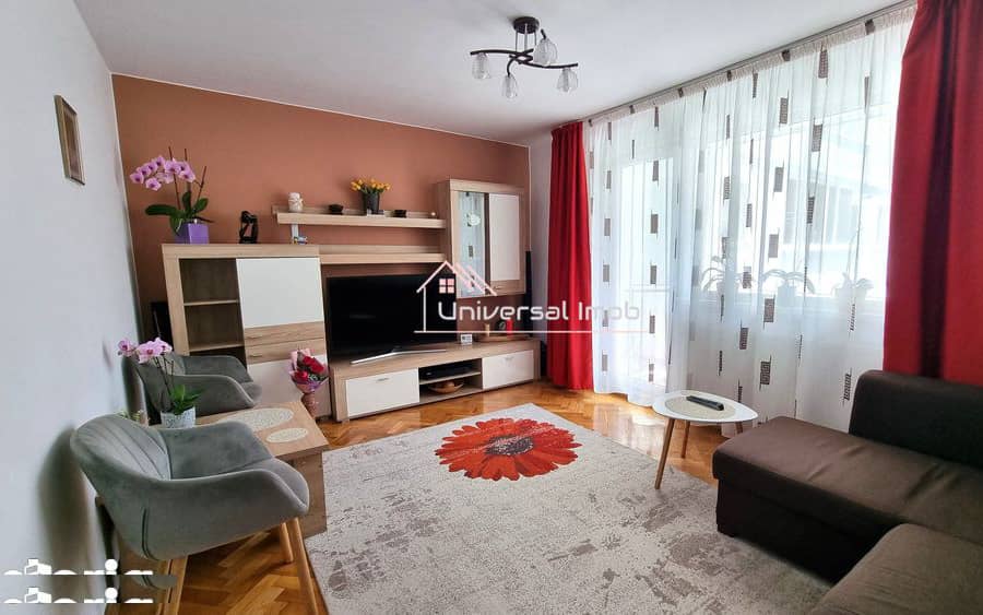 Universal Imob va ofera spre vanzare un apartament cu 4 camere decomandate situat intr-o zona linistita a cartierului Manastur, retras de la strada principala, intre Calea Floresti si str. Grigore Alexandrescu. Acesta se afla la etajul 3 al unui imobil cu 4 etaje, este izolat exterior, are suprafata utila de 85 mp. , compusa din 4 camere, bucatarie, debara, 2 holuri, 2 bai dintre care una cu geam si o logie. Apartamentul se vinde mobilat si utilat modern, cu mobila de bucatarie si dressing facute la comanda, dispune de centrala termica proprie, usa de intrare metalica, geamuri termopan, instalatie electrica si sanitara inlocuite, parchet din lemn masiv, si este dotat cu plita pe gaz, cuptor electric, hota, frigider, masina de spalat vase si masina de spalat rufe, etc. Suplimentar, exista posibilitatea achizitionarii unui loc de parcare cu C.F. individual situat in apropiere, acces controlat cu bariere, la pretul de 10.000 euro. Pentru mai multe informatii sau programarea unei vizionari, ne puteti contacta atat telefonic cat si prin email, mesaj sau whatsapp.