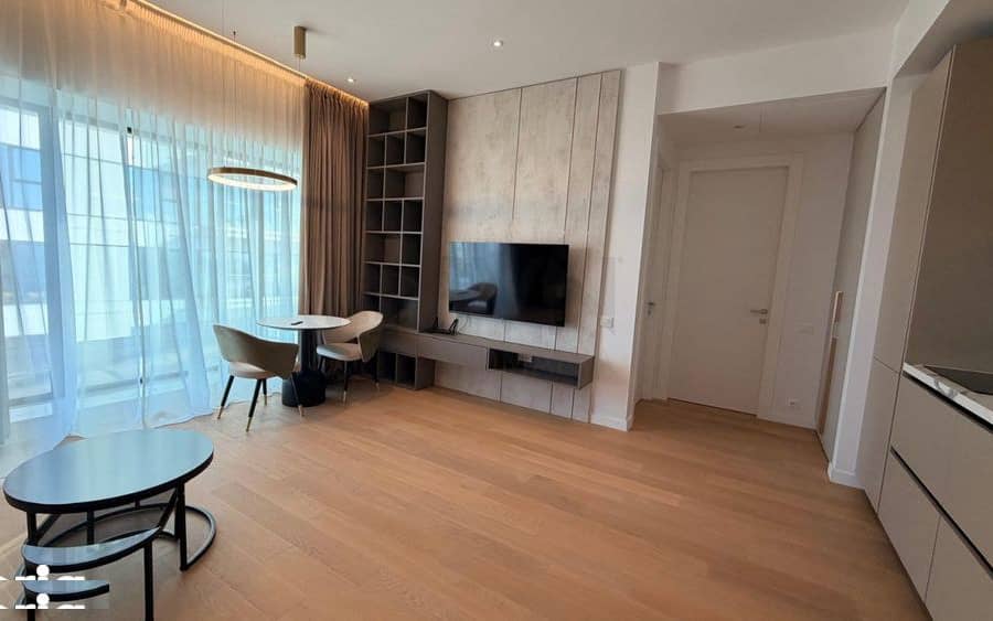 Apartamentul este oferit si spre vanzare si spre inchiriere. Pretul chiriei este de 1.300 euro plus TVA. Locul de parcare din subteran este inclus in pret. Apartamentul are o suprafata utila de 54 mp la care se adauga o terasa de 9 mp.