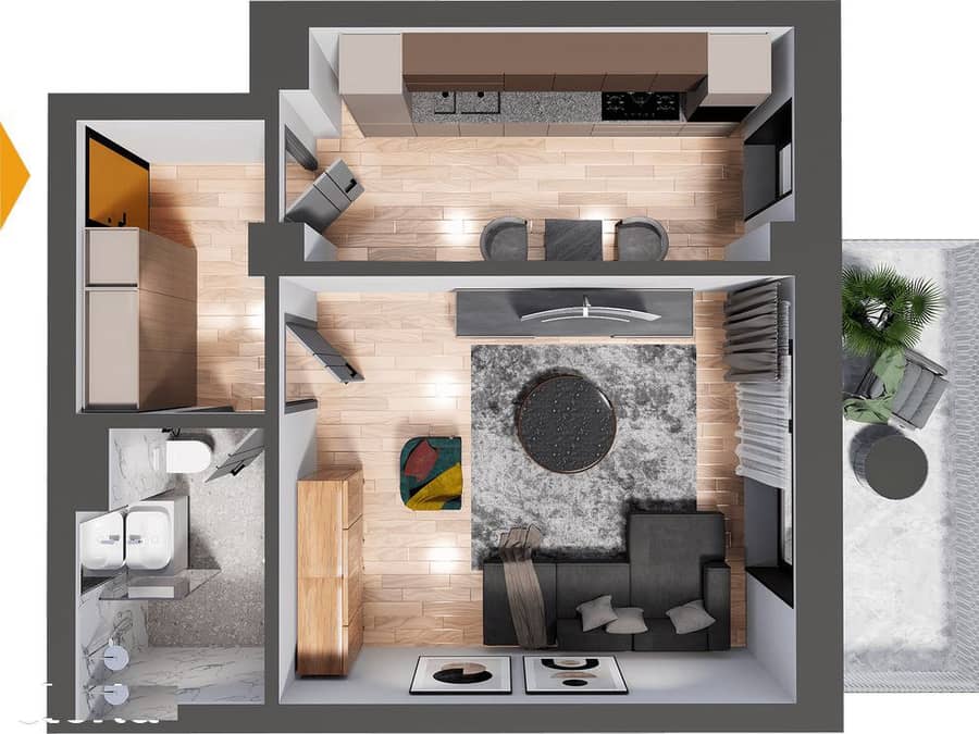 Un apartament de 1 cameră rar în piață, datorită suprafeței generoase și compartimentării care permite o utilizare reală, confortabilă, atât pentru locuire, cât și pentru închiriere
