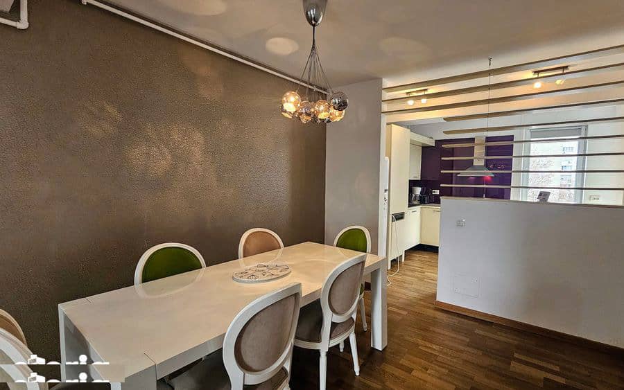 Configurație unică: 3 camere decomandate pe două niveluri, cu separare perfectă între zona de zi (etaj 4) și cea de noapte (etaj 5).