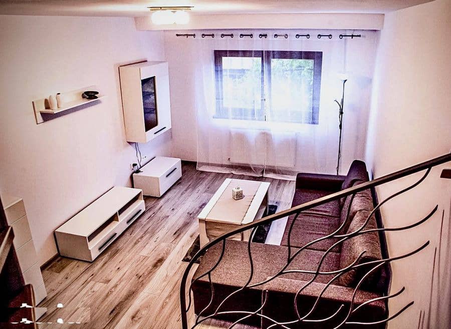 Construit în 2017, apartamentul este dispus pe două niveluri, oferind confort, intimitate și o compartimentare eficientă.