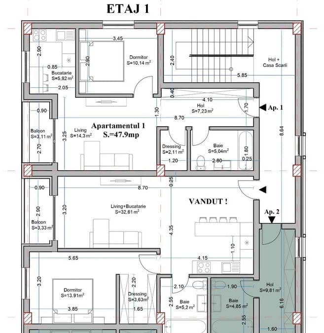 Nota: se poate achizitiona si Apartamentul nr. 5, cu 3 camere, 91mp, etaj 2