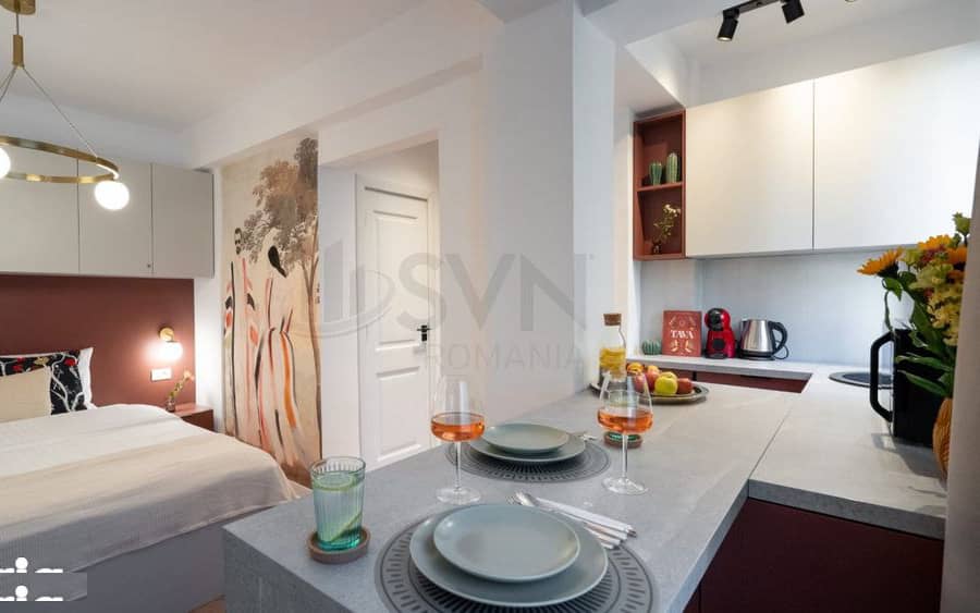In prezent, studio-ul functioneaza in regim Airbnb, reprezentand o oportunitate excelenta pentru investitori care isi doresc venituri rapide din inchiriere pe termen scurt. Datorita amplasarii centrale si cererii constante pentru acest tip de proprietati, randamentul investitional este unul atractiv.
