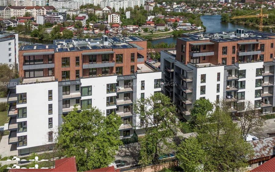 Apartament luminos, situat într-un bloc nou (2024), în complexul Quartier Azuga, cu vedere către lac.
