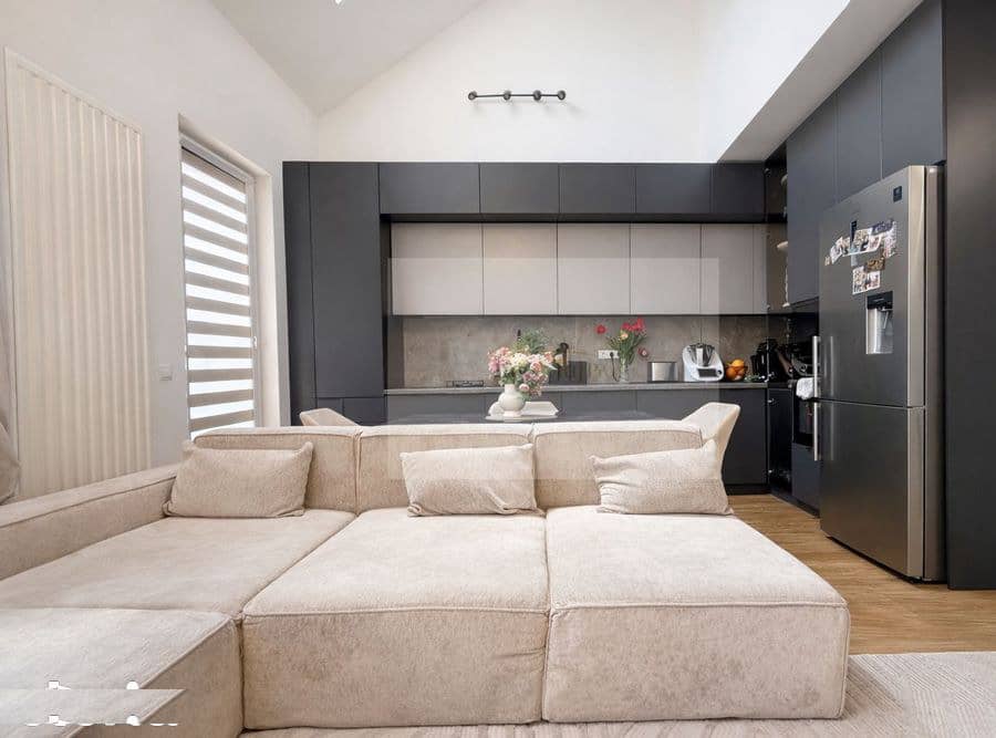 * Living spațios cu bucătărie open-space, complet mobilată și utilată premium