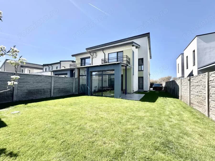 Evand Homes va prezinta spre vanzare un duplex cu 4 camere si 2 bai, situat in Mosnita, zona Boilor, aproape de Kaufland, Lidl, Penny, Funshop Park Mosnita, statie de mijloc de transport. Proprietatea are o suprafata utila de 120 mp si un teren de 301 mp, construita in 2021, pe structura de beton + caramida. Compartimentare: - Parter: hol, bucatarie inchisa, baie, zona de dining, living cu iesire in terasa acoperita si semi-inchisa. - Etaj: dormitor, baie, dormitor, dormitor cu iesire pe balcon. - Pod: spatiu de depozitare sau mansardare. Dotari: - confort termic cu centrala proprie cu incalzire in pardoseala; - tamplarie PVC cu sticla tripan; - spatii de depozitare; - gazon cu aspersoare cu senzori de ploaie; - anexa exterioara; - camere video; - sistem de alarma cu senzori de miscare; - clima; - pod izolat cu spuma; Proprietatea se vinde complet mobilata si utilata. Utilitati: apa, gaz, curent, canalizare, fibra optica, iluminat stradal. Pret: 181.990€ + comisionul standard al agentiei. Pentru detalii și programarea unei vizionari, contactati-ne la 0774 577 597 – Evand Homes, partenerul dumneavoastra de incredere.