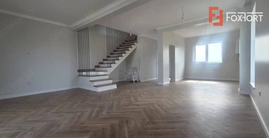 Duplex cu 4 camere de vanzare in localitatea Mosnita Noua. FOXFORT propune spre vanzare casa tip duplex, cu un regim de inaltime Parter + Mansarda, situata in Mosnita Noua, avand un numar de 4 camere, cu o suprafata utila de 101 mp si teren 260 mp. Anul constructiei este 2025, structura beton, material zidarie caramida, izolatie cu polistiren de 10 cm, acces pod. Imobilul dispune de urmatoarele utilitati: curent electric, apa, canalizare, gaz, acces internet. Compartimentarea este dispusa dupa cum urmeaza: - Parter: hol acces, living, bucatarie, baie, terasa acoperita; - Mansarda inalta: hol acces, 3 dormitoare, baie; - Pod depozitare. Finisajele interioare sunt moderne: - Usa intrare: pvc; - Usi interioare: celulare; - Tamplarie feronerie feronerie: pvc; - Podele: parchet, gresie. Pretul este de 164.990€ + comisionul standard al agentiei. Se accepta ca si modalitate de plata surse proprii sau credit bancar. Indicator performanta energetica: Clasa A ID intern: V9626