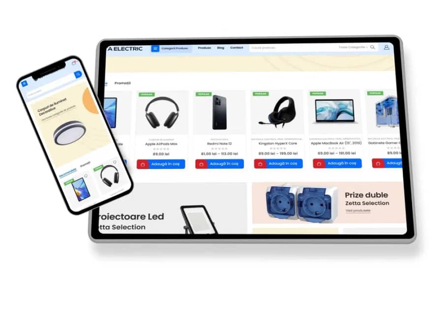 Creăm magazine online, oferim servicii complete, ajutăm clientul cu tot ce are nevoie pentru a-și pune afacerea pe picioare, noi ne ocupăm de achiziționare domeniu, alegere serviciu de găzduire, integrare în platforme precum eMAG Marketplace, CEL.ro, Shopmania, unde vă puteți lista produsele și crește numărul de vânzări. De asemenea magazinele au: