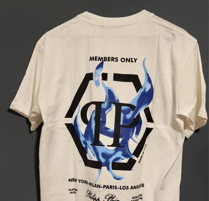 Tricou alb Philipp Plein oversize cu imprimeu mare pe spate, mărimi L , XL