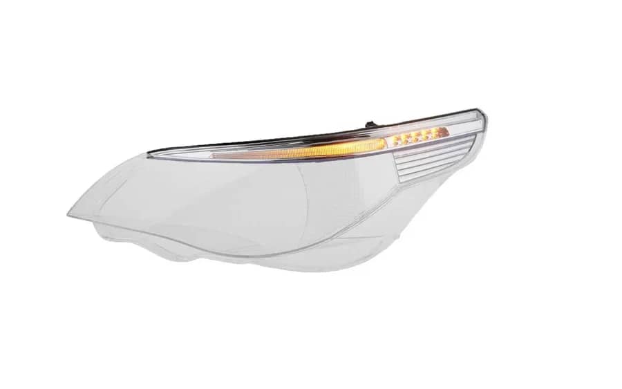 Sticlă de far pentru partea stângă a modelului BMW E60 si E61, cu sprânceană LED inclusă. Nu mai trebuie să folosești sprânceana veche – aceasta este deja montată pe sticlă, fiind gata de instalare.