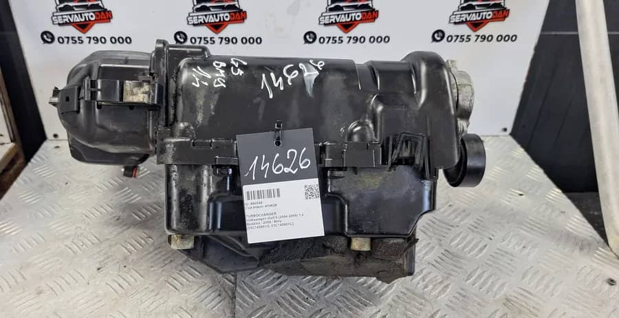 Turbocharger / Turbocompresor Volkswagen Golf 5 (2004-2009) 1.4 (cod motor: Bmy) Benzina 2006. Cod(uri): 03C145851G, 03C145801C. #ID Intern: 90548. Piesele comercializate sunt originale, provenite din dezmembrari. Dispunem de o gama larga de piese multimarca. Piesele sunt verificate inainte de a fi puse spre vanzare. In caz de neconformitate piesa se poate returna. Va rugam sa verificati disponibilitatea pieselor telefonic. Trimitem in tara prin curier.
