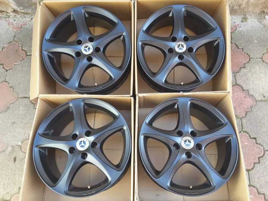 Set 4 jante aliaj pe 17; 5x112; 8Jx17; ET 26; la butuc 66,6 mm, CMS; dedicate Mercedes E clase w211, w213, CLK, GLC, CLS w218, fără defecte, fără zgârieturi, culoare negru mat, nu sunt strâmbe sau sudate, nerulate în țară.